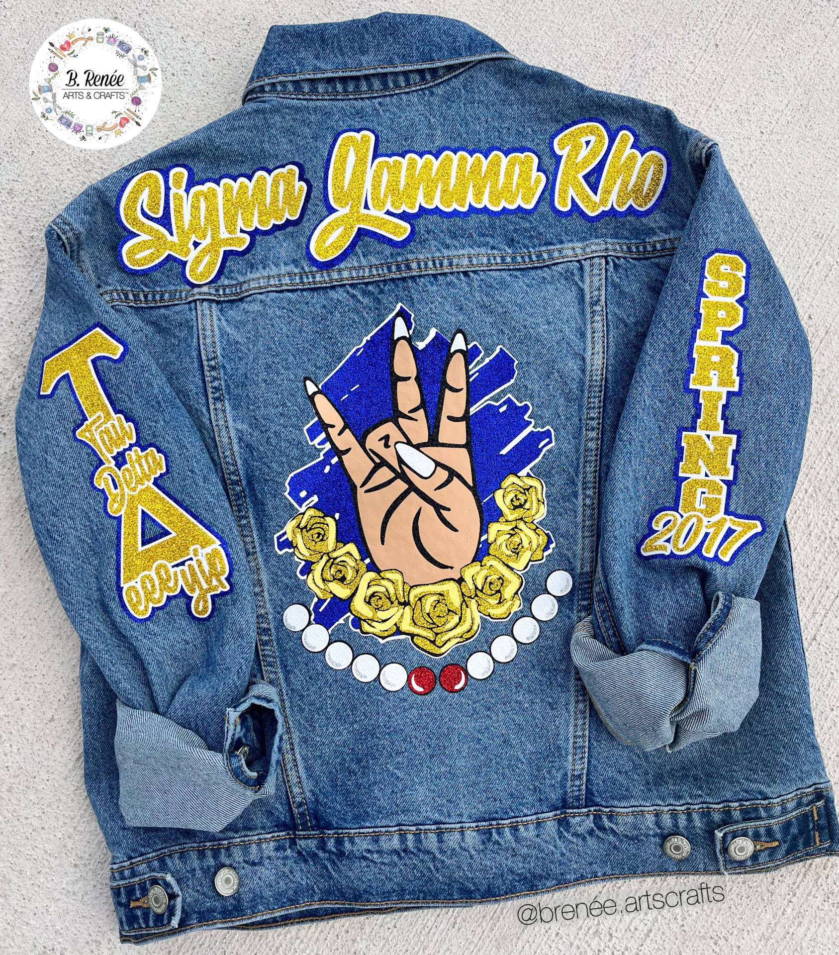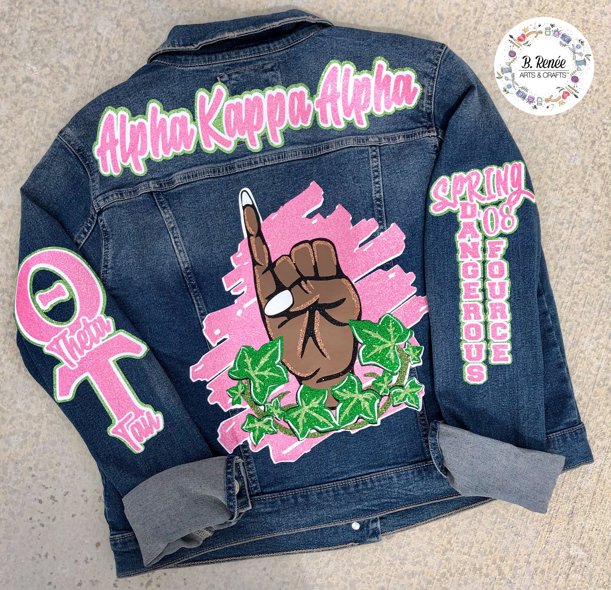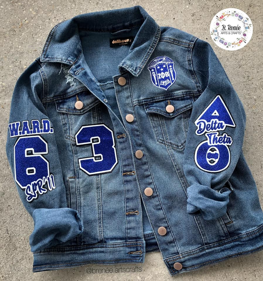 This denim jacket is EVERYTHING! Customize it with your organization name, chapter, name of line, number, and skin tone. Other organization designs COMING SOON!